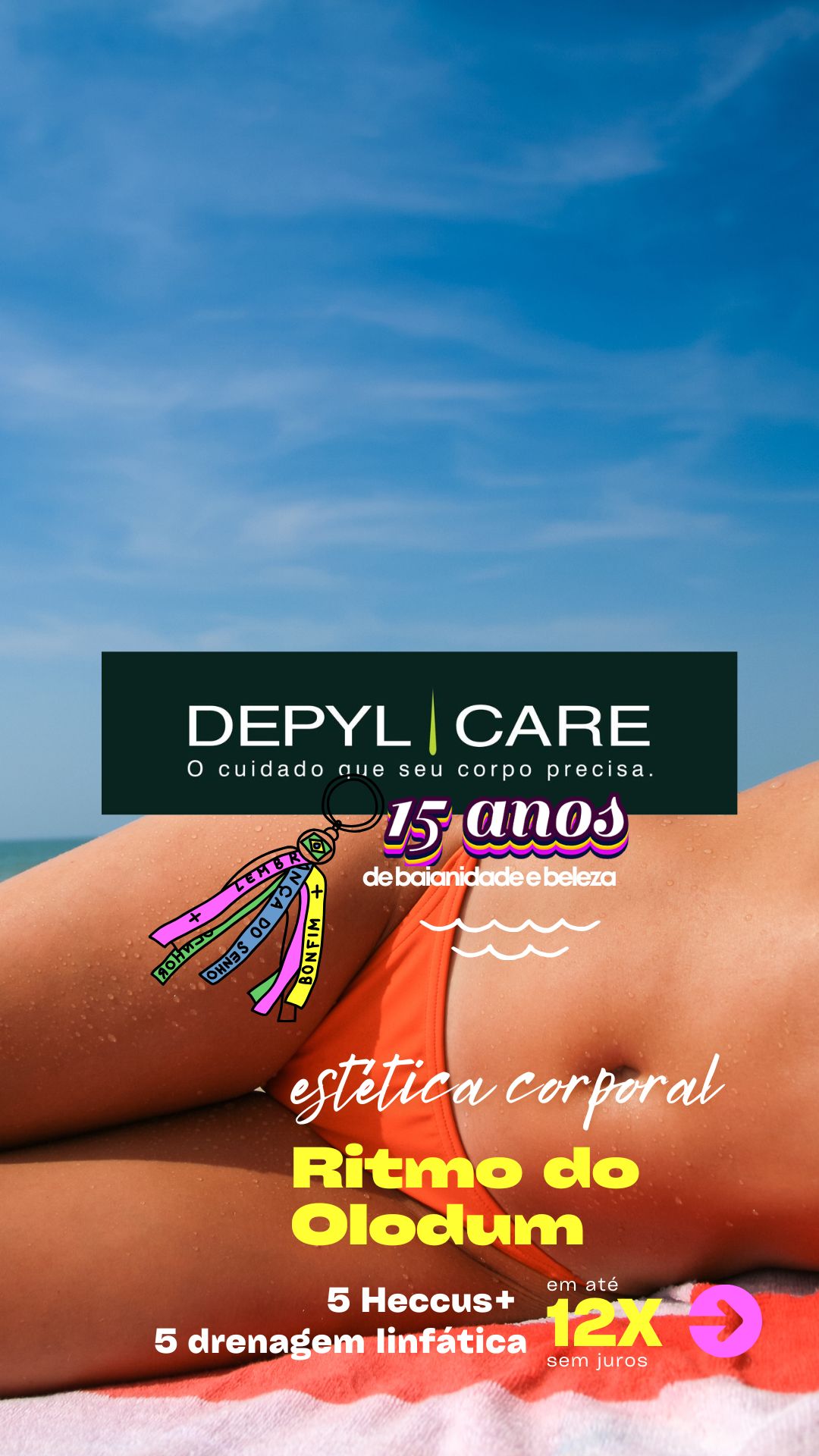 Em celebração aos seus 15 anos de história, a DEPYL CARE apresenta o pacote "Ritmo do Olodum". São 5 sessões de Heccus e 5 de drenagem linfática, unissex, para promover uma estética corporal completa, melhorar a circulação, combater a retenção de líquidos e modelar o corpo de maneira eficaz. Experimente a união da tradição baiana com os melhores tratamentos estéticos.