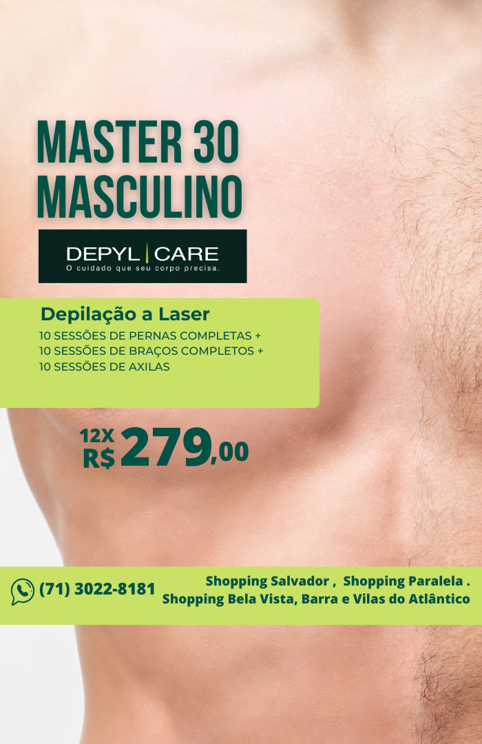 Se os pelos não combinam com você, venha para a DEPYL CARE. O processo de remoção é muito mais confortável que a lâmina ou cera, e permite que você atinja o resultado a longo prazo nos pelos tratados. 10 SESSÕES DE PERNAS COMPLETAS + 10 SESSÕES DE BRAÇOS COMPLETOS + 10 SESSÕES DE AXILAS