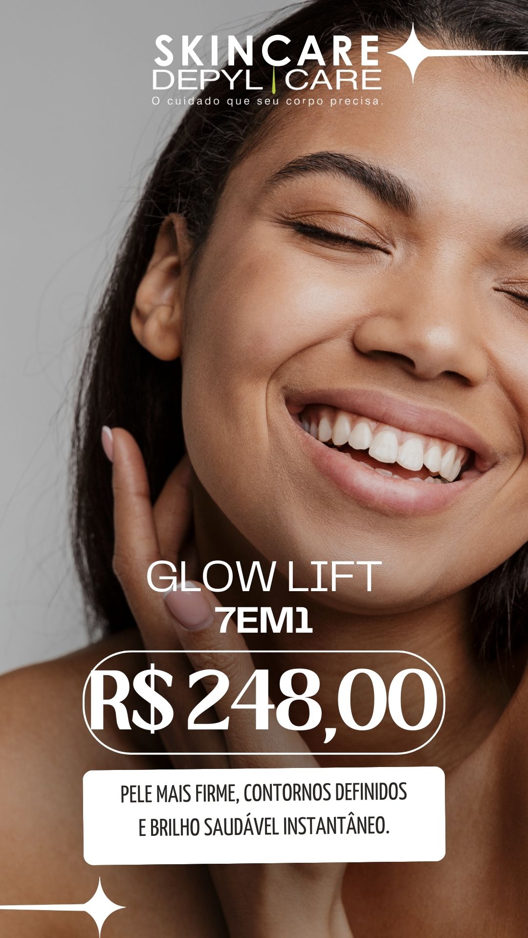 Seu contorno facial mais firme, em um ritual de alto impacto estético. O Glow Lift combina radiofrequência, peeling ultrassônico, sérum tensor e máscara firmadora para proporcionar uma pele visivelmente mais esticada, tonificada e com brilho saudável — sem agulhas.