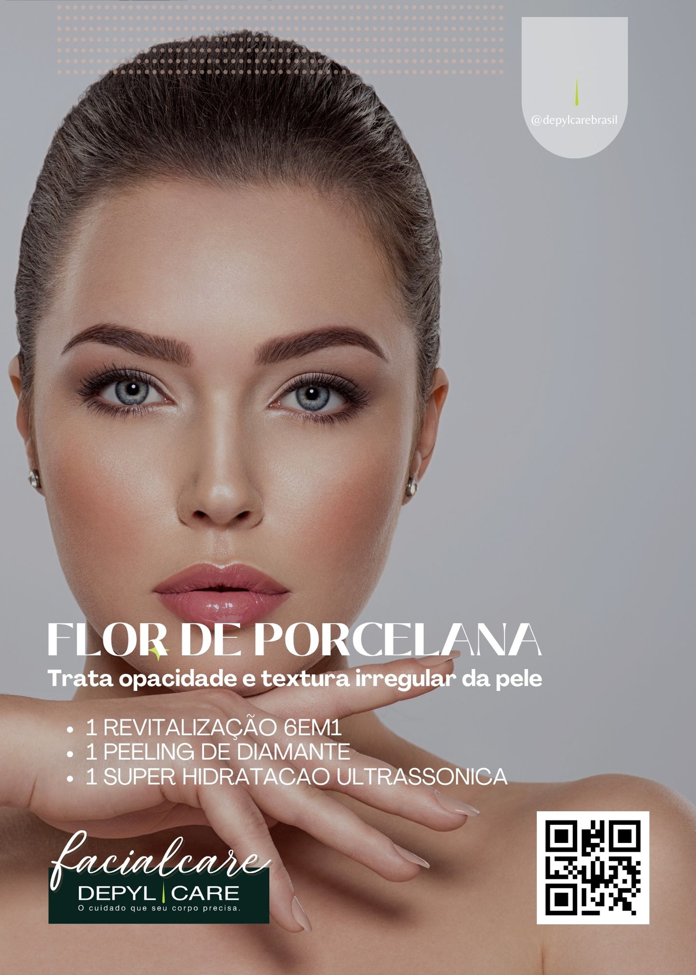 O Pacote FLOR DE PORCELANA da DEPYL CARE foi especialmente desenvolvido para aqueles que desejam conquistar uma pele radiante, suave e com aparência rejuvenescida. Este pacote é ideal para homens e mulheres que buscam combater sinais de envelhecimento, opacidade e textura irregular da pele. Através de uma combinação de tratamentos inovadores, o Pacote FLOR DE PORCELANA proporciona resultados impressionantes, realçando a beleza natural e promovendo um aspecto saudável e luminoso.