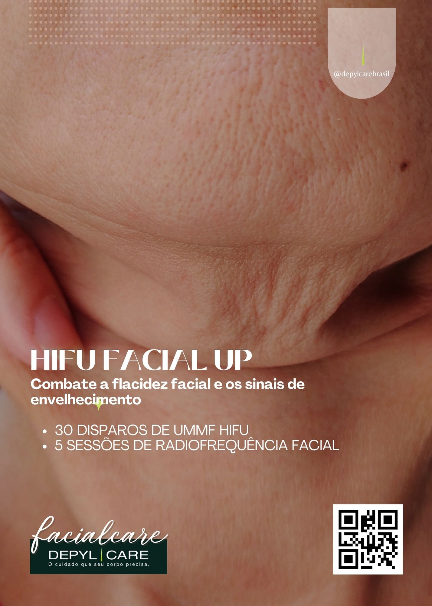 O Pacote HIFU FACIAL UP da DEPYL CARE é a escolha perfeita para quem busca combater a flacidez facial e os sinais de envelhecimento, proporcionando um efeito lifting natural e uma aparência rejuvenescida. Este pacote é destinado a homens e mulheres que desejam elevar a firmeza e a elasticidade da pele do rosto, utilizando tecnologias avançadas para resultados visíveis e duradouros. Através de um tratamento eficaz, garantimos uma experiência transformadora que valoriza a sua beleza natural.