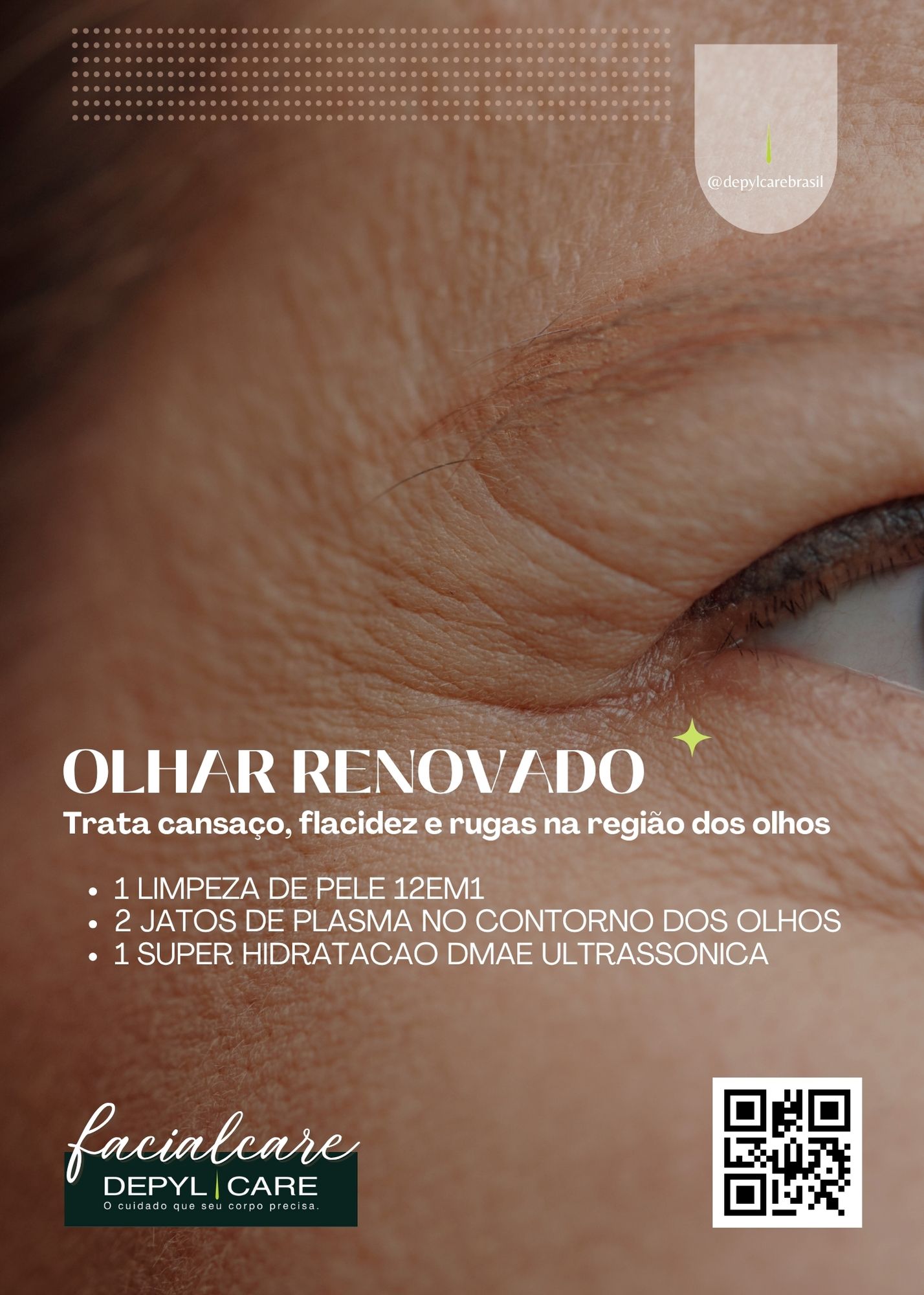O Pacote OLHAR RENOVADO da DEPYL CARE é a solução ideal para quem deseja combater sinais de cansaço, flacidez e opacidade na região dos olhos. Este pacote é pensado para homens e mulheres que buscam revitalizar o olhar, proporcionando uma aparência mais fresca e descansada. Combinando tratamentos avançados, o Pacote OLHAR RENOVADO oferece um resultado surpreendente, destacando a beleza natural e elevando a autoestima.