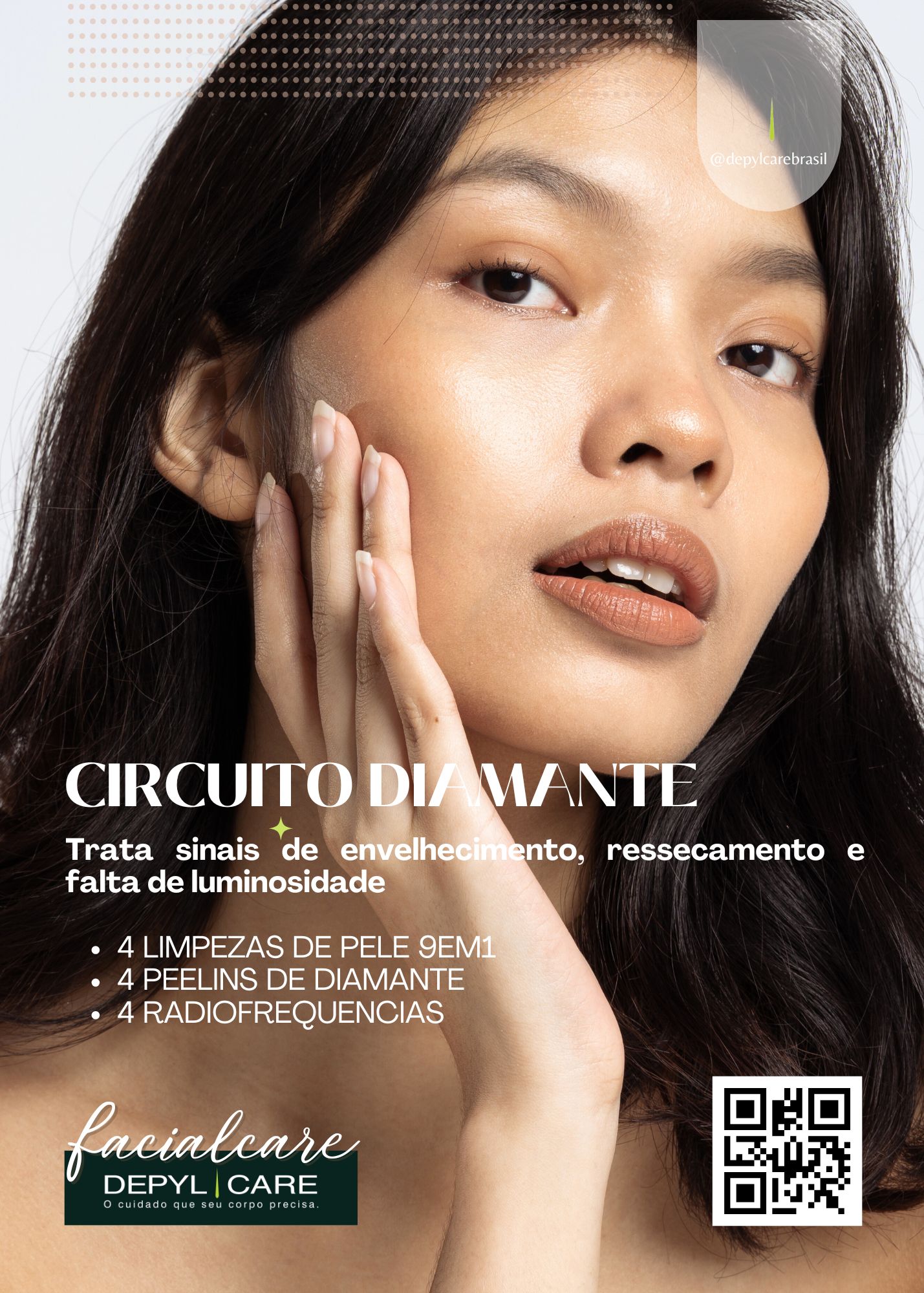 O Pacote CIRCUITO DIAMANTE da DEPYL CARE foi especialmente desenvolvido para aqueles que desejam proporcionar uma transformação completa à pele, combatendo os sinais de envelhecimento, ressecamento e falta de luminosidade. Este pacote é ideal para homens e mulheres que buscam uma pele mais lisa, radiante e rejuvenescida. Com uma combinação de tratamentos de alta performance, o Pacote CIRCUITO DIAMANTE oferece resultados excepcionais, promovendo uma aparência saudável e vibrante.